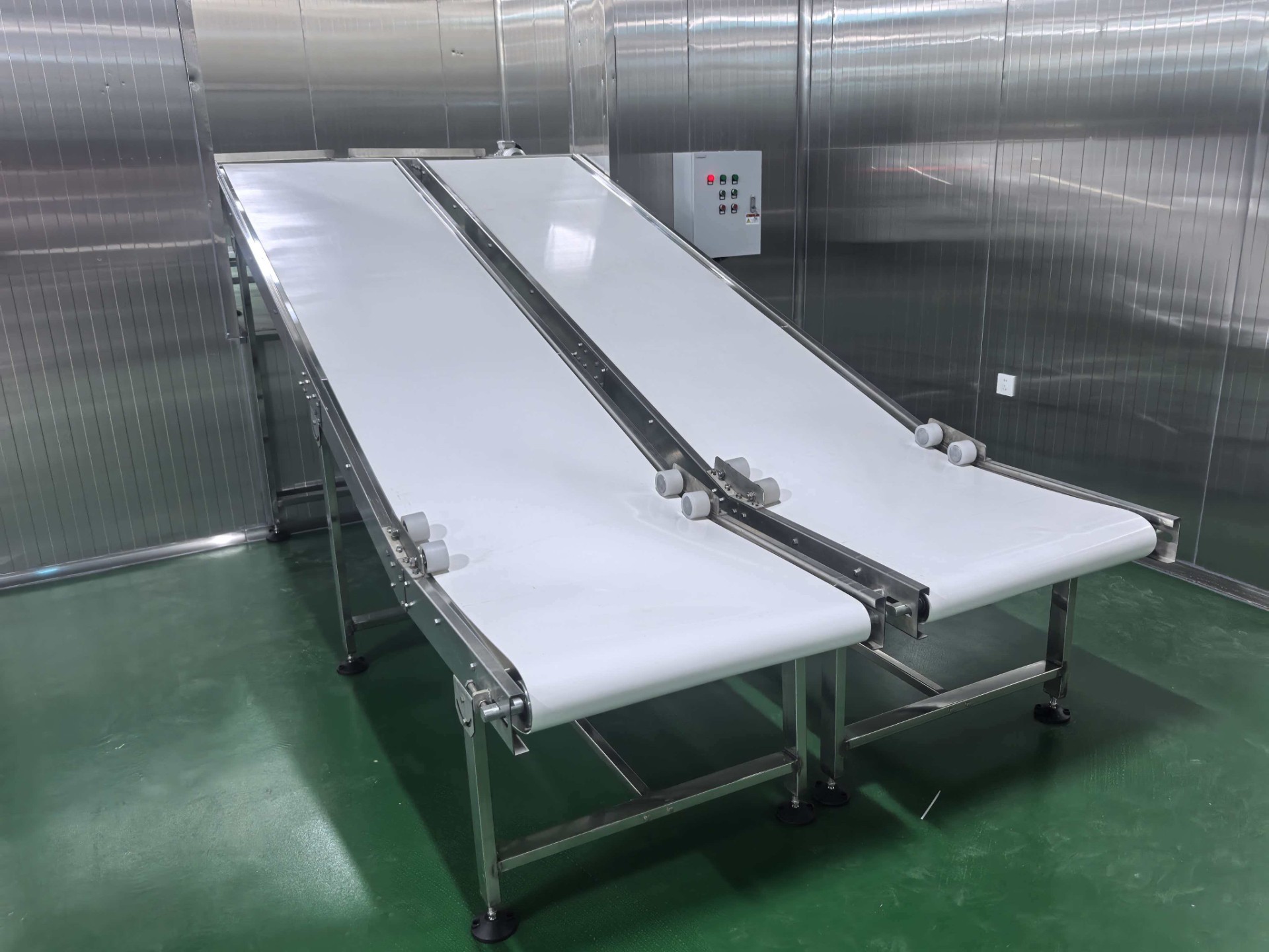 两台不锈钢皮带输送机在合肥客户现场安装